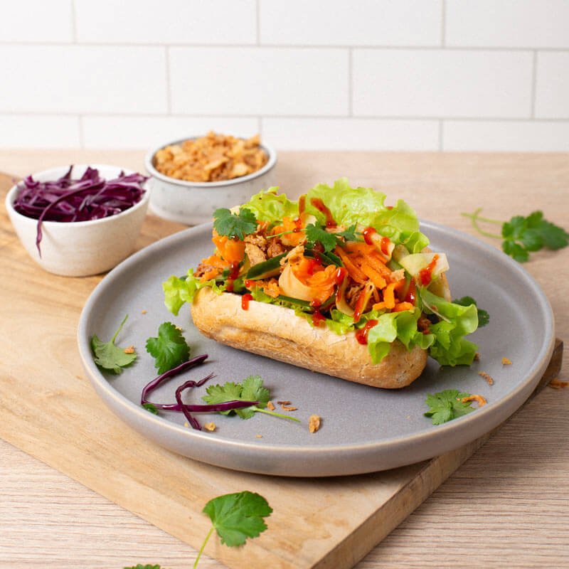Banh Mi är en smakrik baguette som kombinerar den franska och vietnamesiska matkulturen, ett arv från den franska kolonialtiden. Den har blivit en populär gatumaträtt och är omtyckt för sin härliga blandning av olika smaker och texturer. Här görs de glutenfria med våra minibaguetter och i fyllningen finns bland annat krispiga grönsaker, långbakad fläskkarré och srirachasås. I det vietnamesiska originalet har man även paté, och i vår svenska version använder vi leverpastej. Inget fan av det? Hoppa över, det blir moffigt och gott ändå!