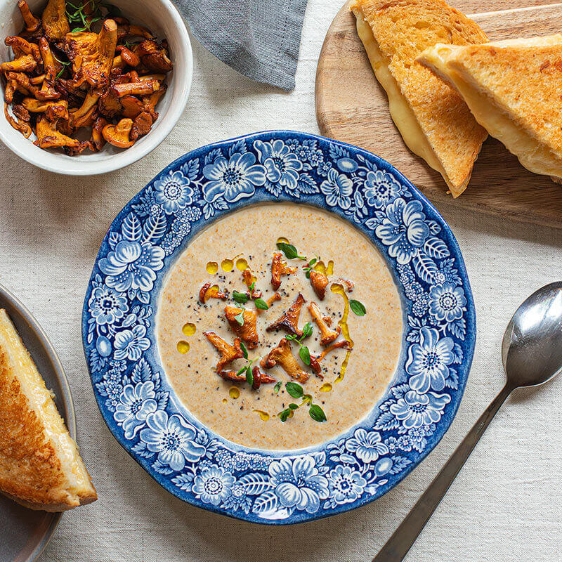 Härliga höst! Denna kantarellsoppa bjuder på precis de där smakerna som gör hösten till årets bästa matsäsong. Även om soppan är god helt för sig själv, så borde du ändå passa på att komplettera med krispigt stekta toastmackor med Västerbottensost. Man ångrar aldrig en toast så att säga.