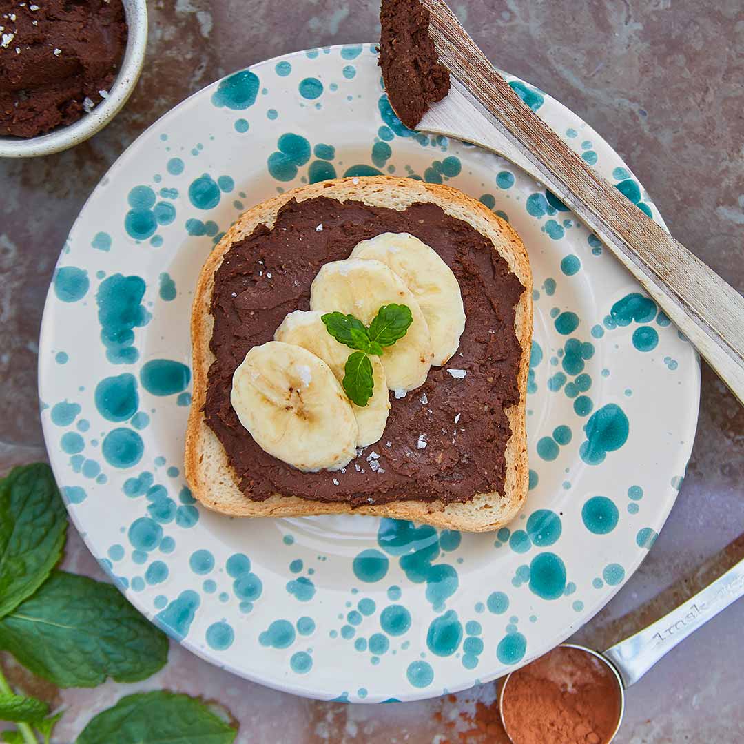 Choklad som smörgåspålägg? Varför inte, speciellt när pålägget är en chokladhummus med proteinrika kikärtor som bas och är naturligt sötad med dadlar och banan. Dessutom är receptet veganskt. Prova gärna på vår Vita Toast eller osötade Havrebröd. Hummusen är också god att dippa riskakor i!