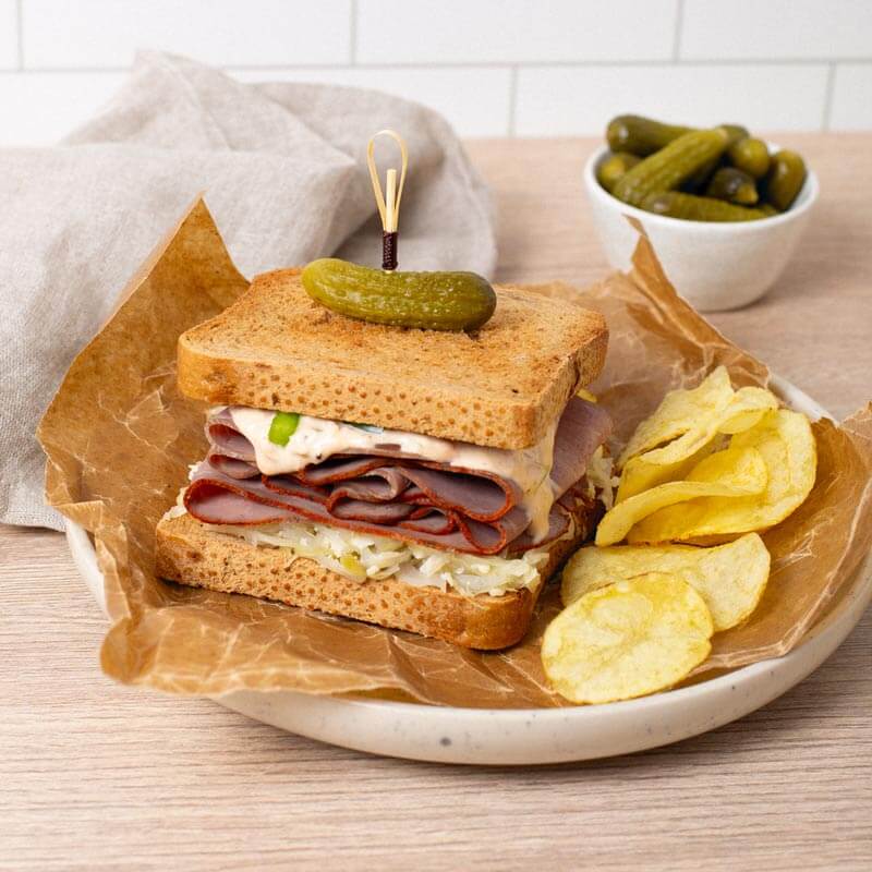 Reuben Sandwich är en riktig klassiker – en grillad macka som är fullproppad med godsaker som pastrami, ost, surkål och dressing. Teorierna pekar på att den skapades i New York, någon gång i början av förra århundradet och inte sällan syns den på svenska restaurangmenyer. Här kommer ett recept på en glutenfri Reuben Sandwich, som är precis sådär moffig och mumsig som man vill att en middagsmacka ska vara.