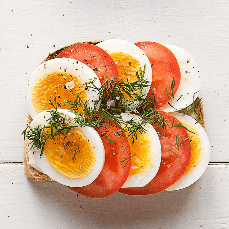 (No Ratings Yet)Bred majonnäs på brödet och varva sedan ägg- och tomatskivor ovanpå. Toppa med finhackad dill, salt och peppar.