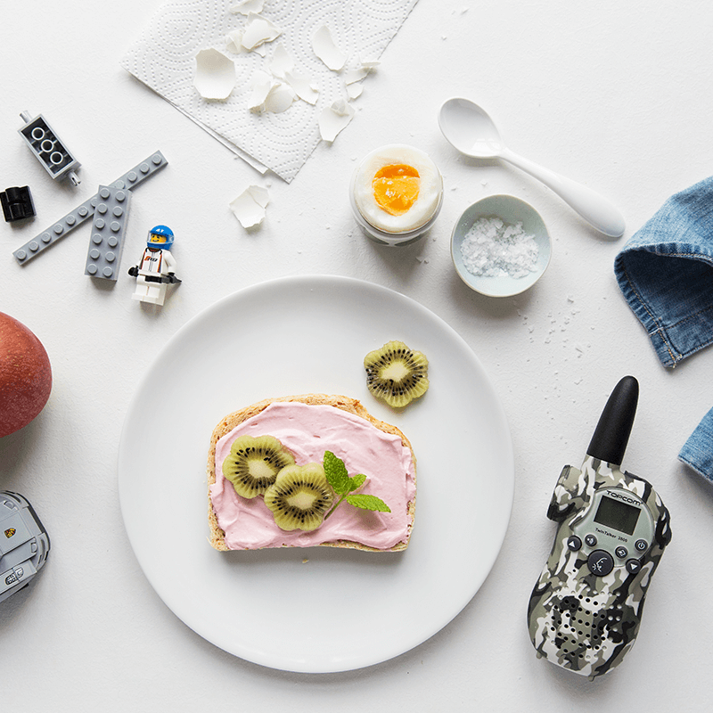 Börja med att blanda cream cheese och hallon tills den blivit rosa. Efter det breder du det på mackan efter behag, toppa sedan med några skivor kiwi.